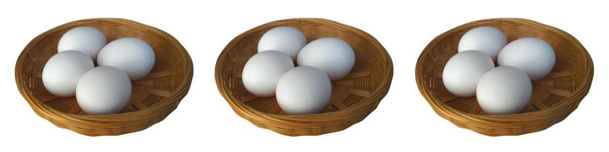 Clare has 3 baskets. She put 4 eggs into each basket. How many eggs did she put in baskets?